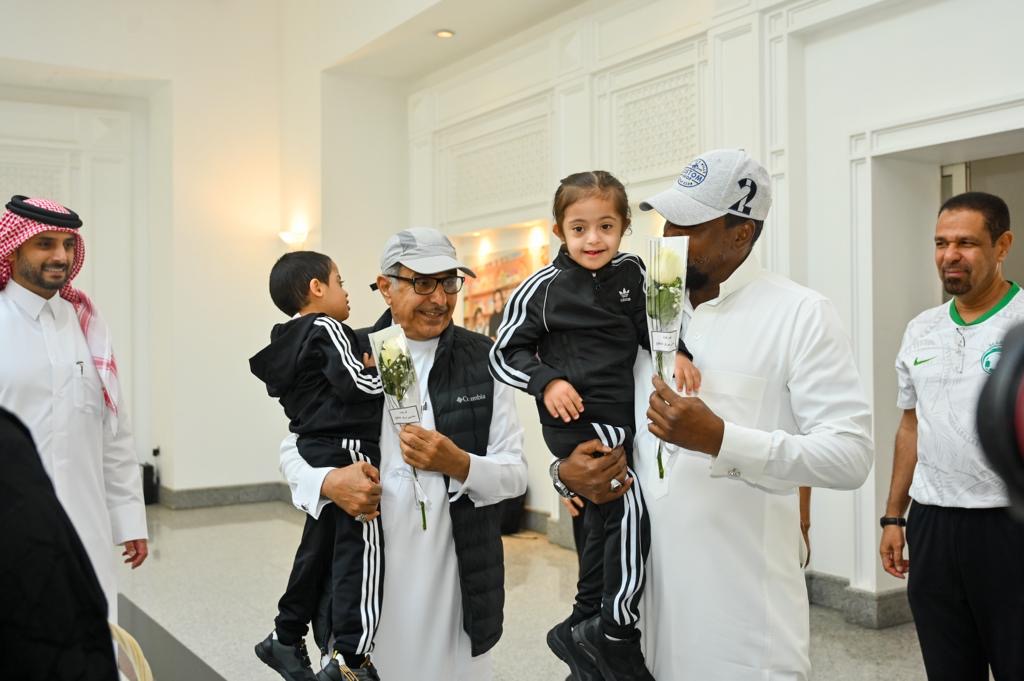 الشفلح يستضيف كأس آسيا بصحبة عائلة تعويذة البطولة ويستقبل وفداً من قدامى لاعبي كرة القدم السعوديين.